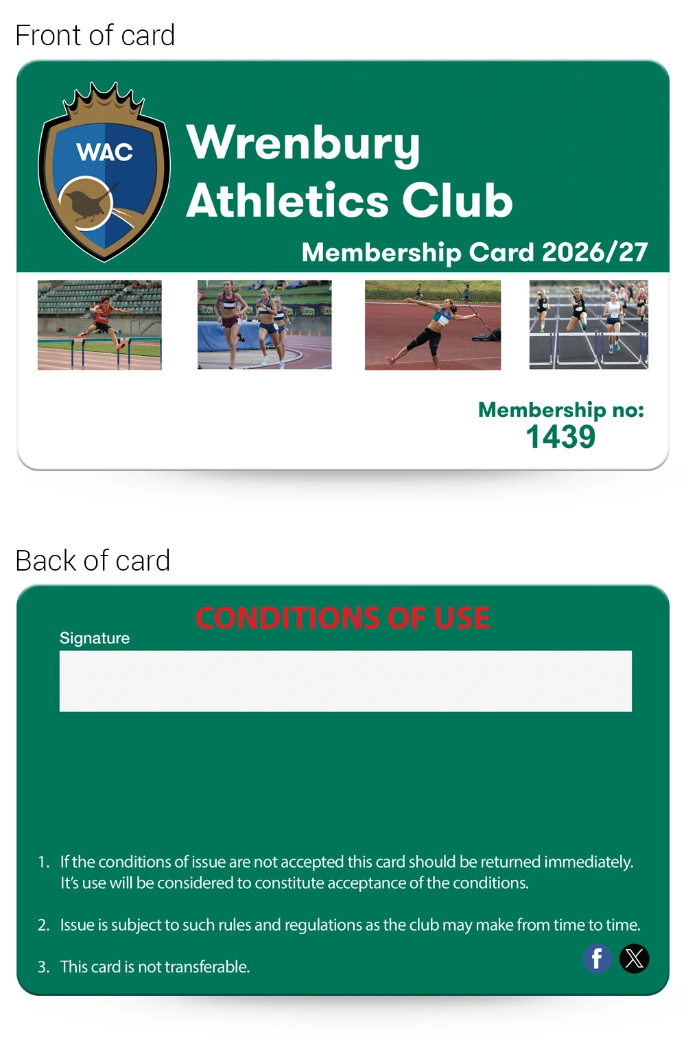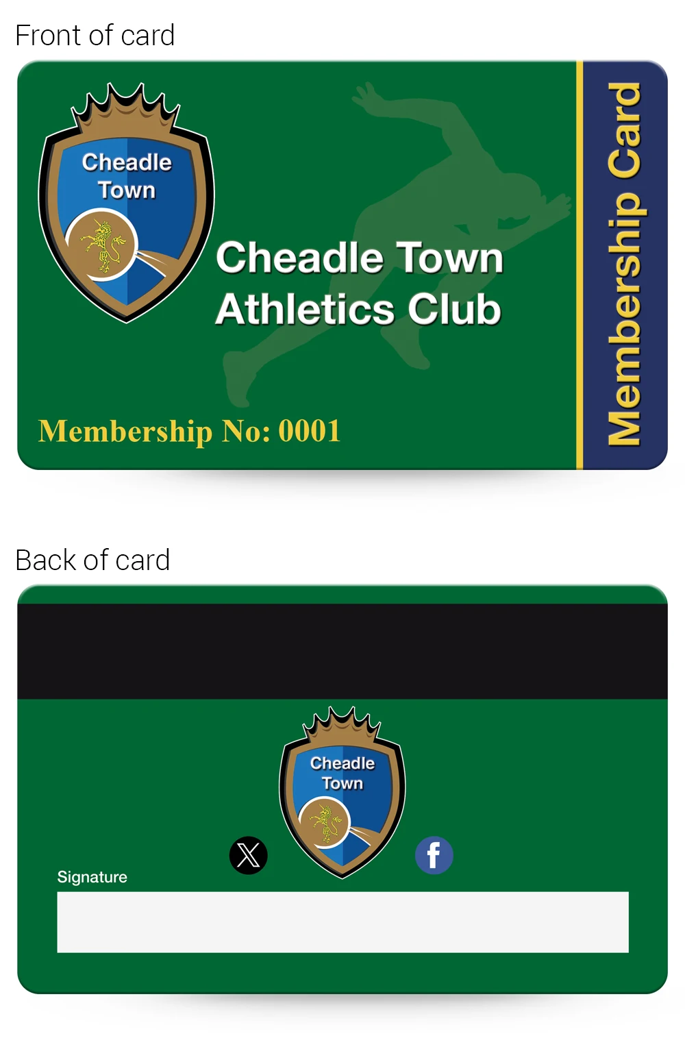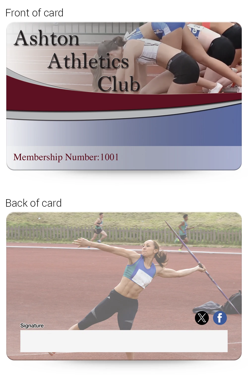 Athletics Clubs Membership card examples