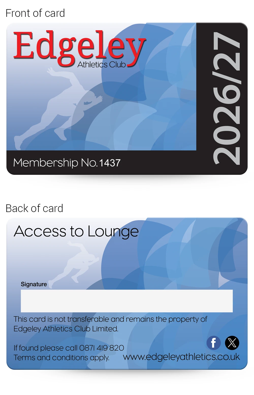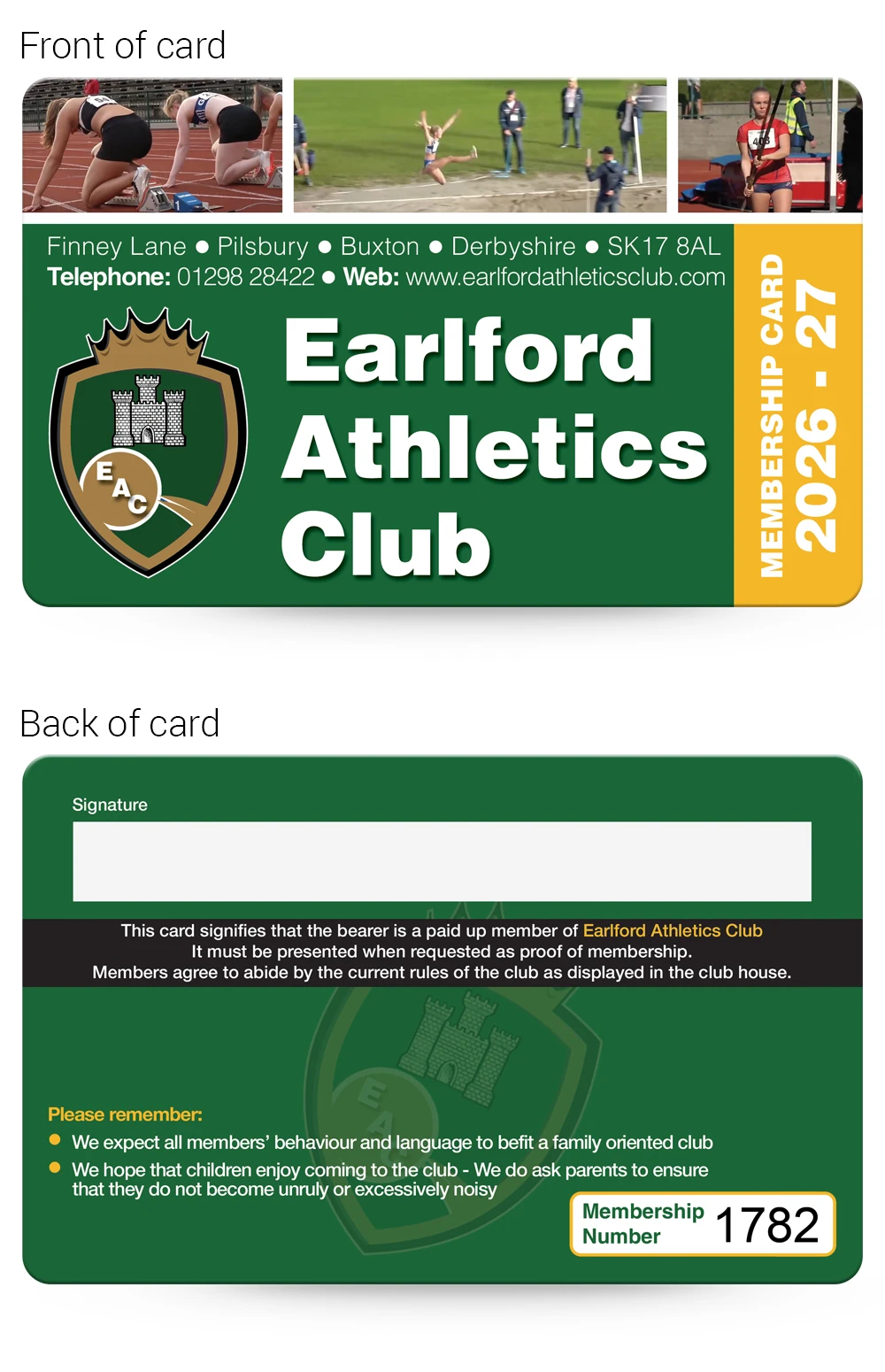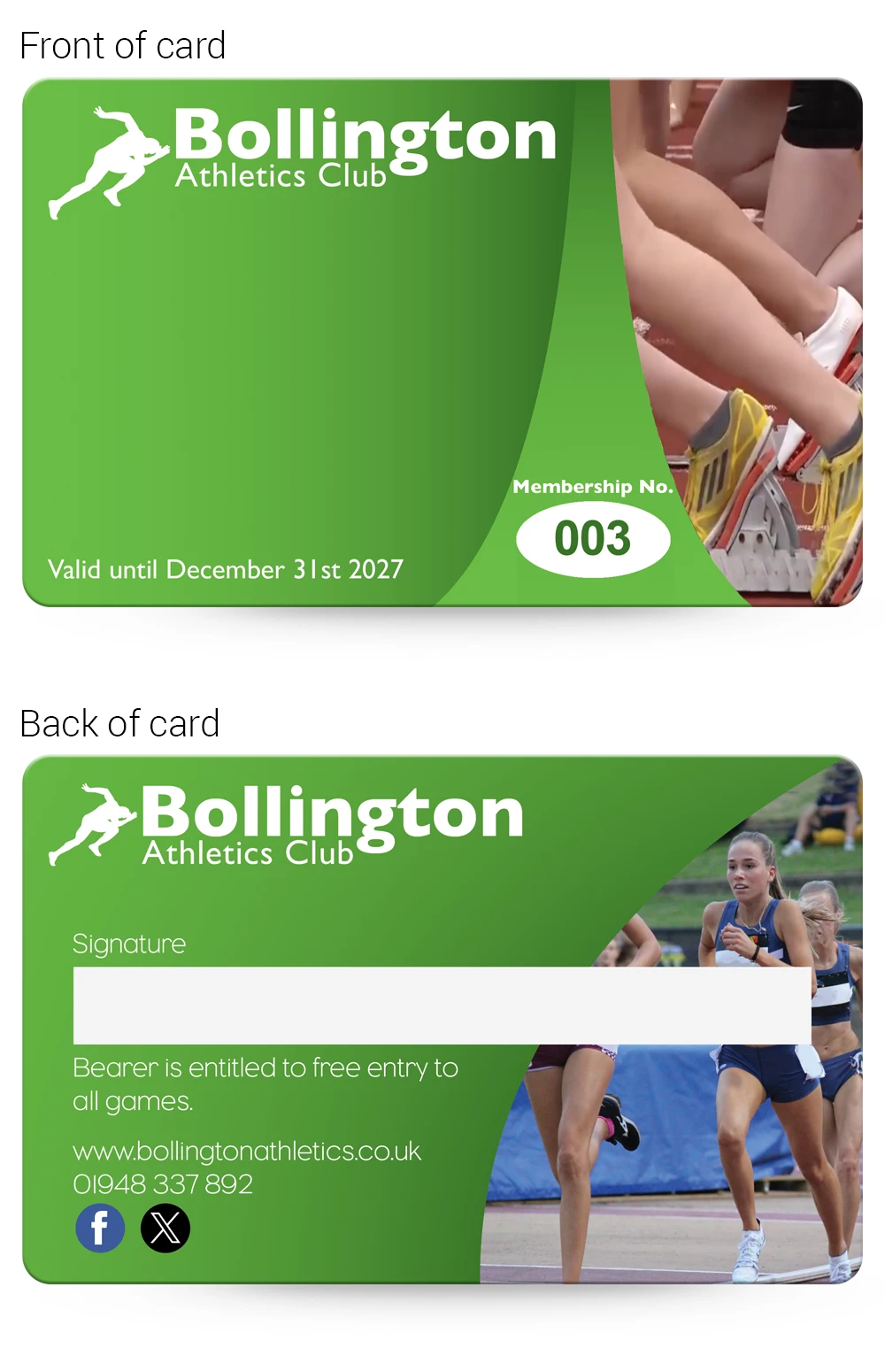 Athletics Clubs Membership card examples