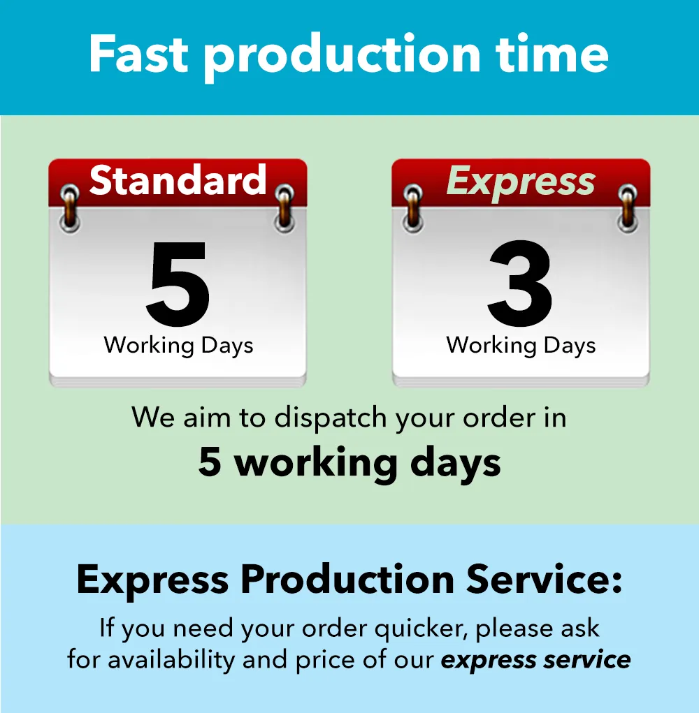 Fast standard production time of just 5 working days