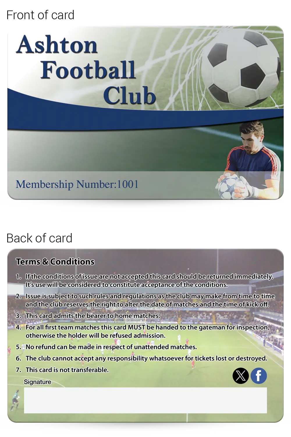 Football Clubs Membership card examples