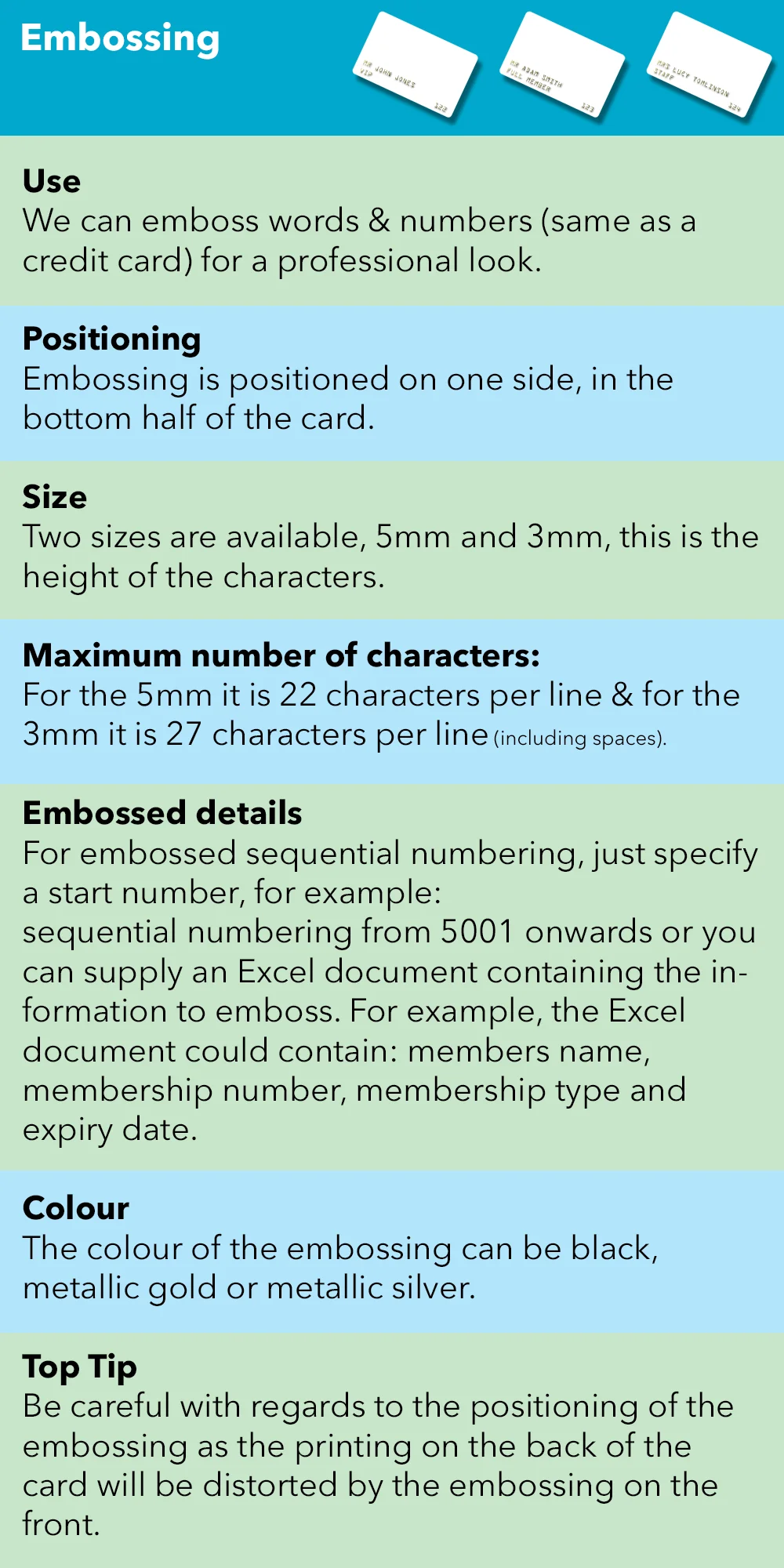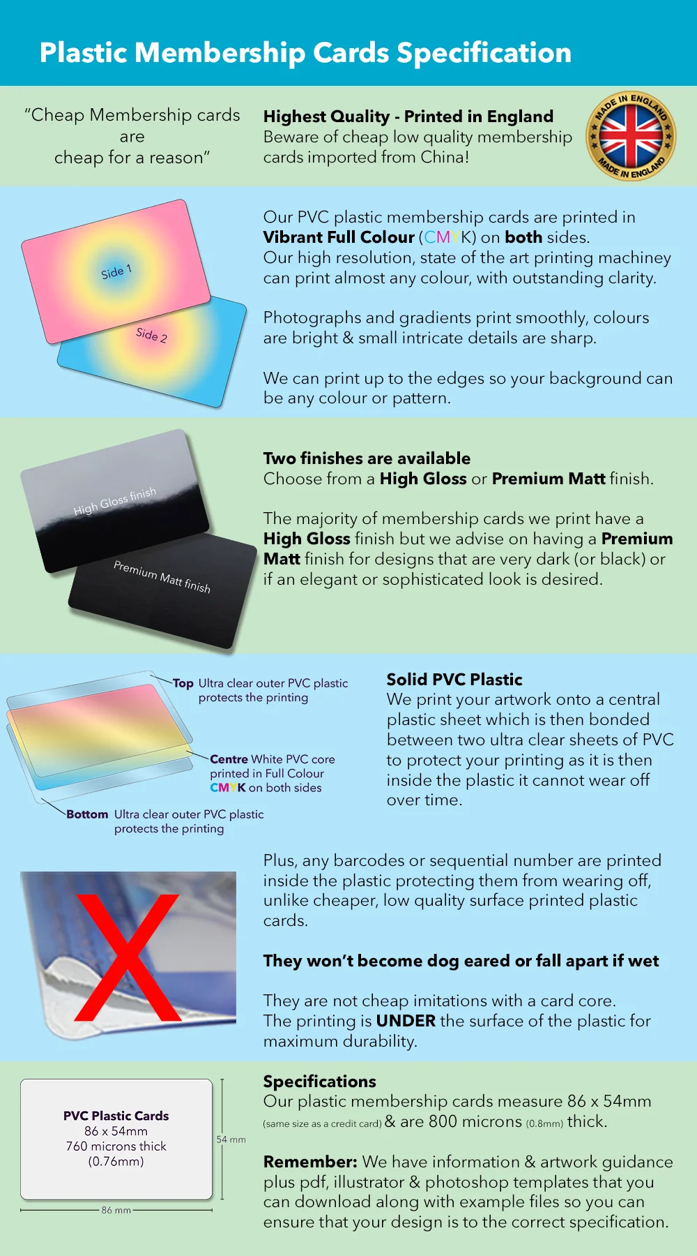 We can also incorporate optional extras such as a sequential numbering, a signature strip, magnetic strip, barcode or even the members name within your design.