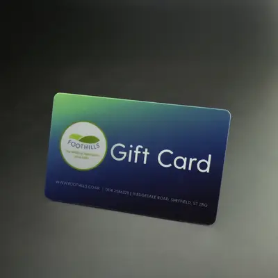 We can print high quality, professional, full colour PVC plastic Gift Cards.