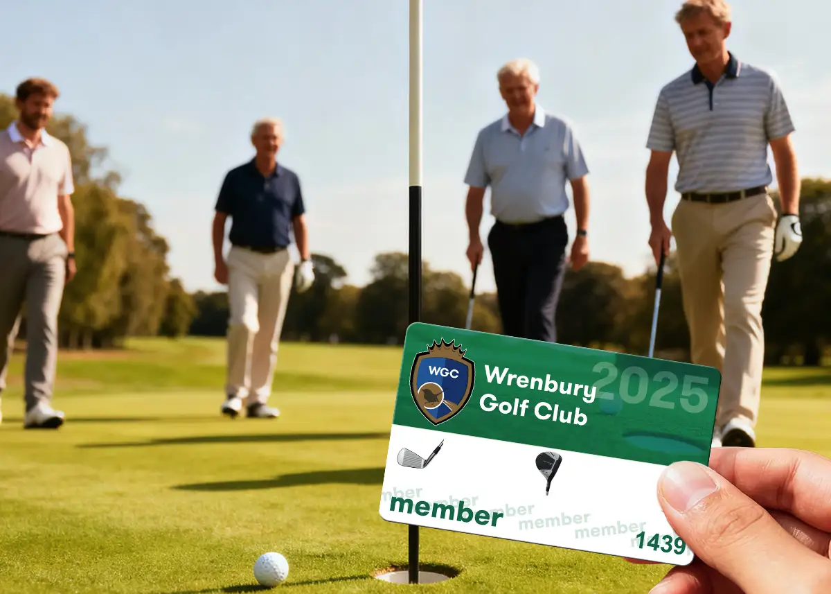 This realistic mock-up shows how your finished Golf Club membership cards will look, so you can check and approve the layout, text and overall design before production begins.