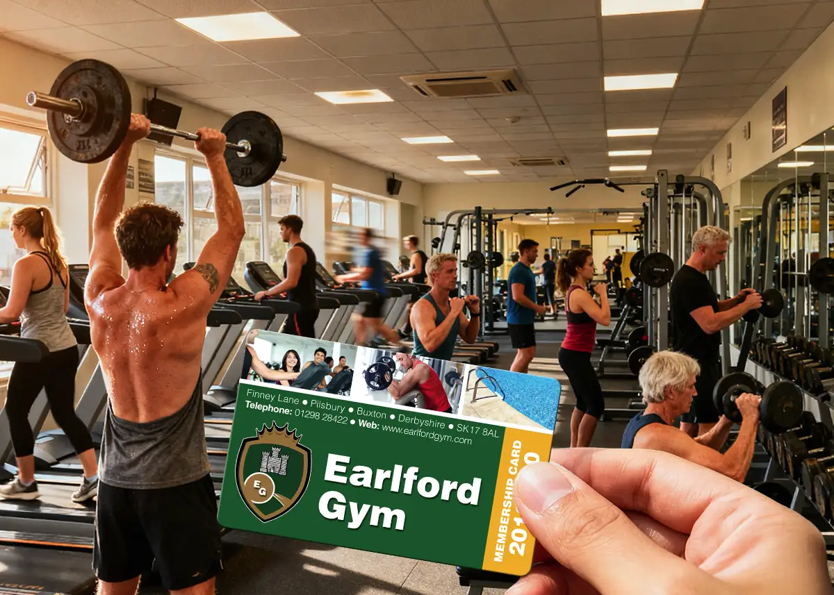 This realistic mock-up shows how your finished Gym Club membership cards will look, so you can check and approve the layout, text and overall design before production begins.