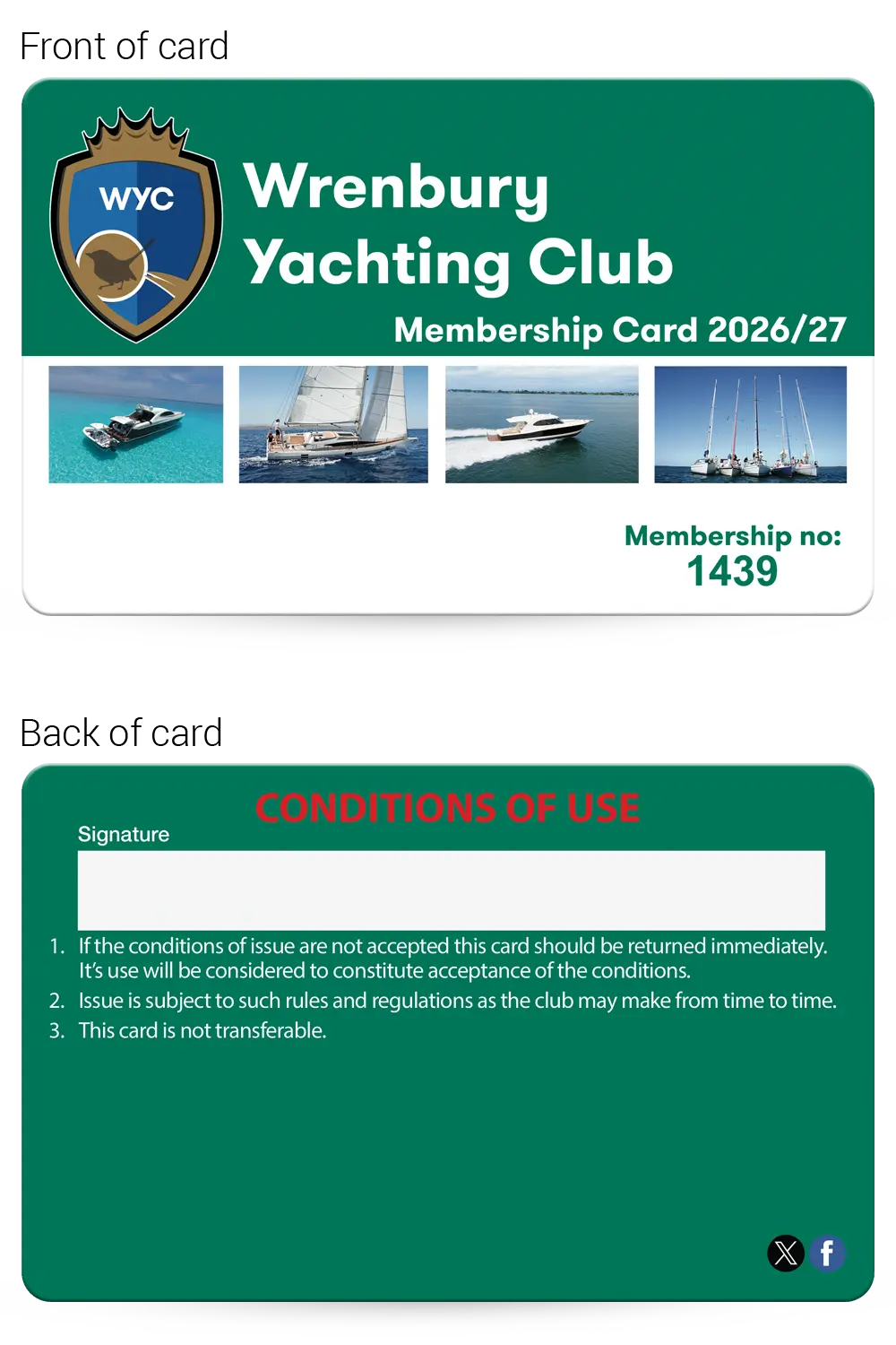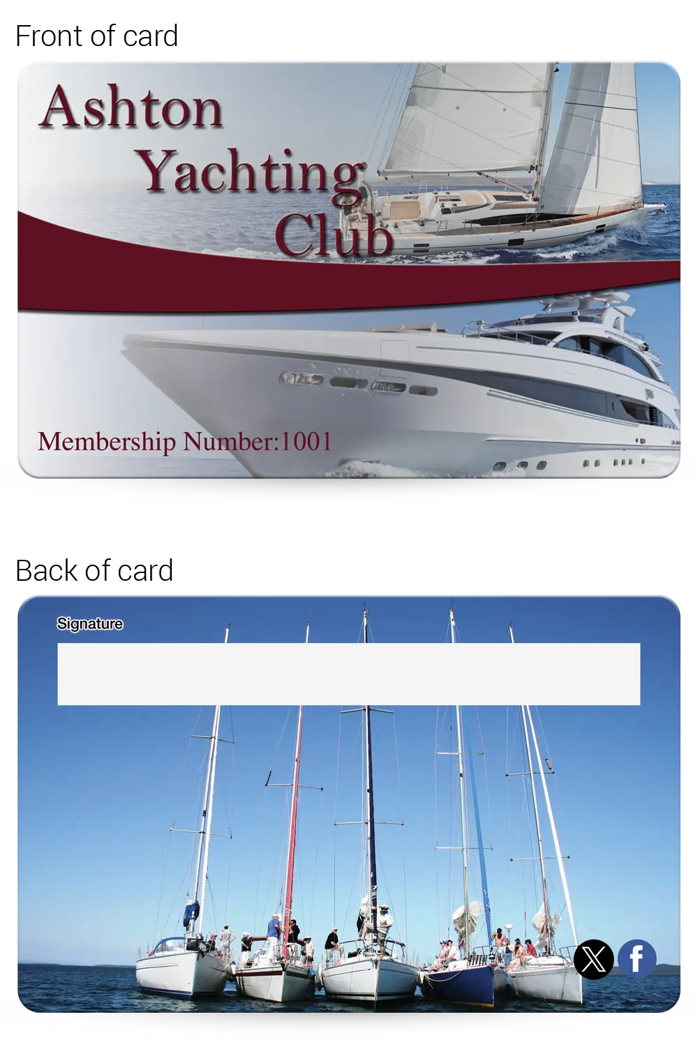 Yachting Clubs Membership card examples